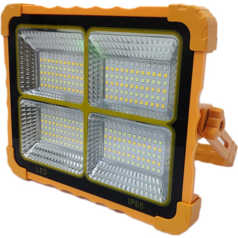 پروژکتور 100وات Solar LED light و طراحی ساده و زیبا، مناسب فعالیتهایی مانند کمپینگ، کوهنوردی، ماهیگیری، کار در معدن، کشاورزی و تعمیر ماشین است. دارای پنج حالت نوردهی شامل آفتابی، مهتابی، ترکیبی پرنور و کمنور و چراغ پلیسی آبی و قرمز چشمکزن است که حالت چشمک زن برای مواقع اضطراری کاربرد دارد.